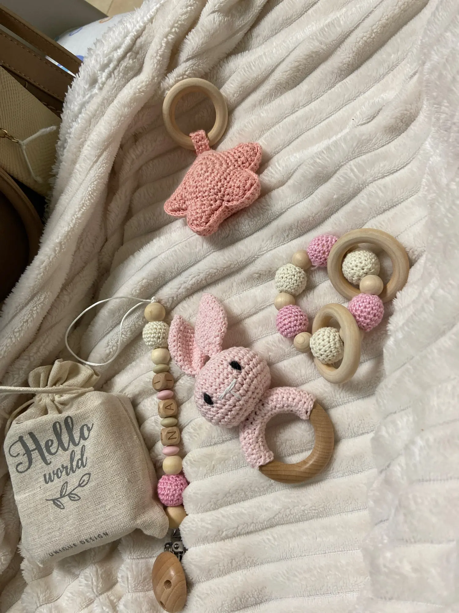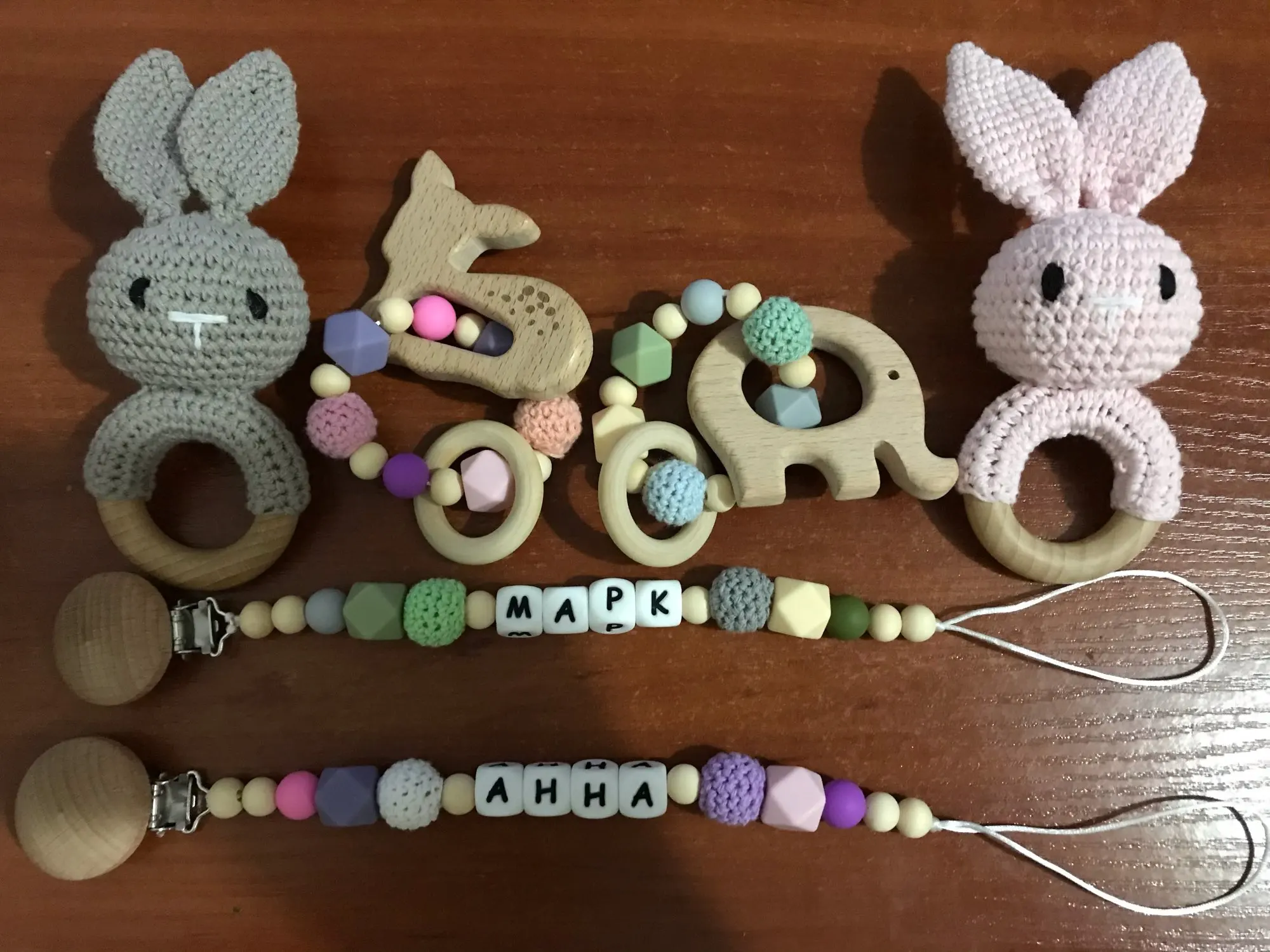 Девочки! Товар очень хорошего качества я прям в восторге. Все аккуратно сделано, жирафик связан ровными стежками внутри приятный колокольчик, без запаха, на держателе для соски качественная прищепка, веревка толстая внутри, узлы крепкие- ребёночек точно не порвёт! Имя правильно написали. Заказывала в СПБ 09.11-22.11(забрала) . Я закажу ещё в другом цвете. Очень советую!