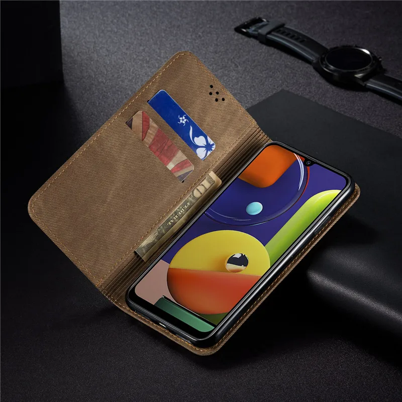Кожаный чехол-книжка в стиле ретро из джинсовой ткани для телефона ...
