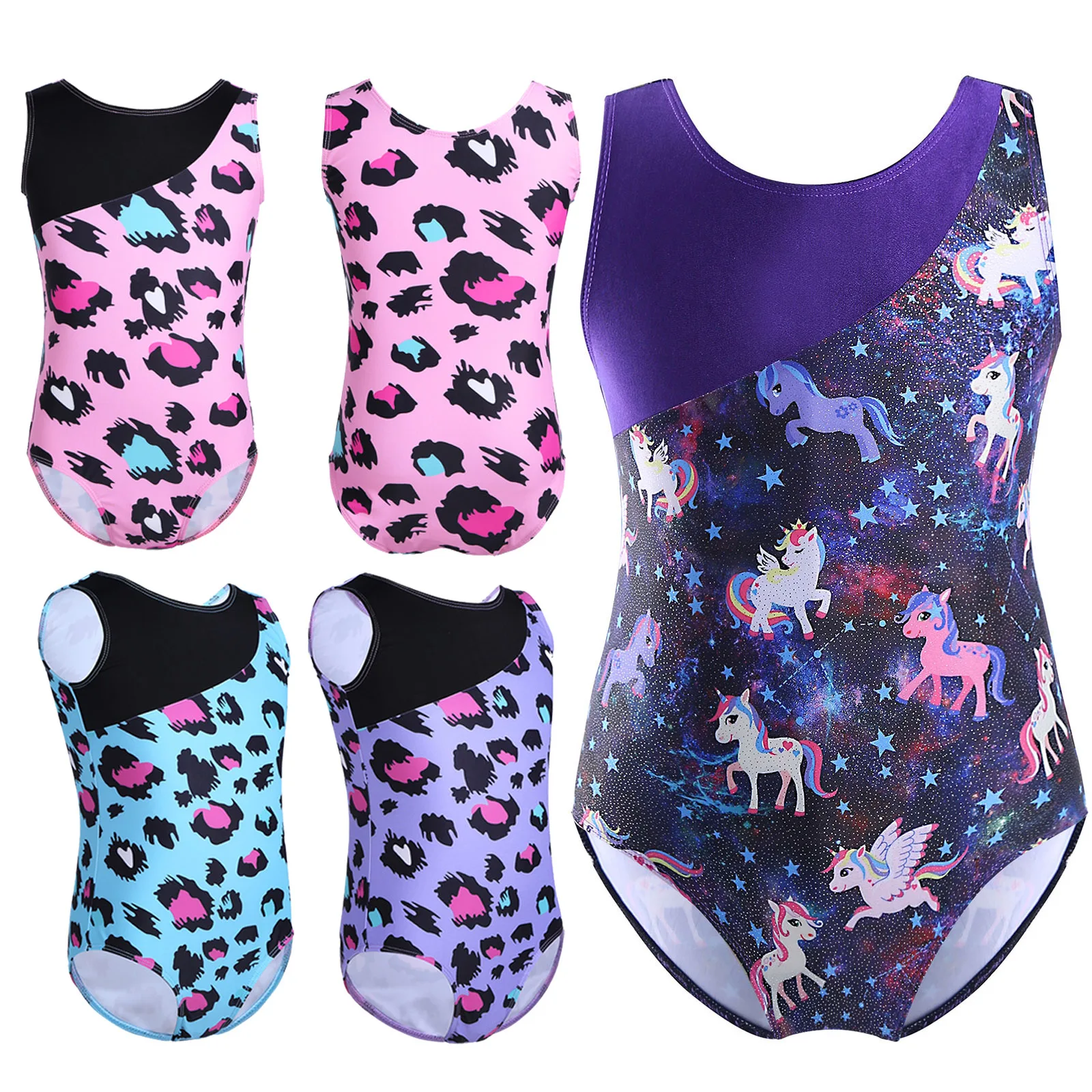Детское гимнастическое трико для девочек, балетное трико с леопардовым принтом для девочек, гимнастический комбинезон, Боди для танцев