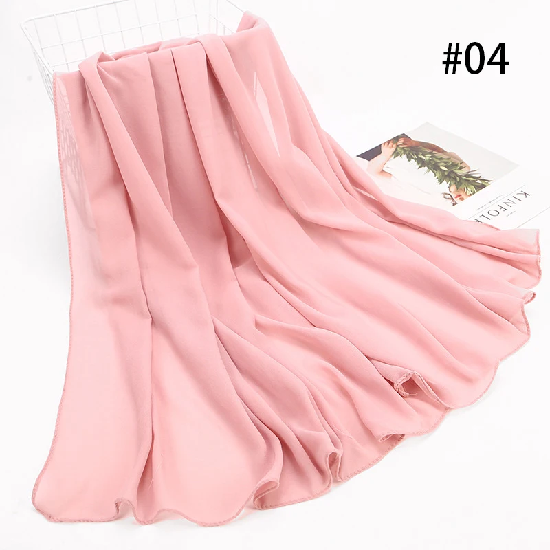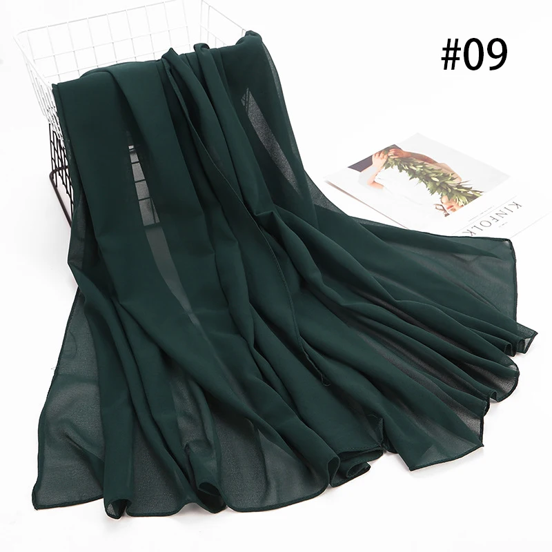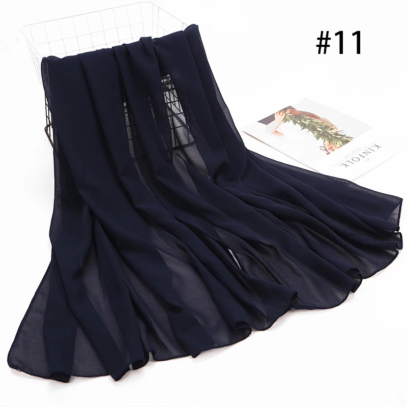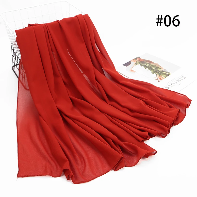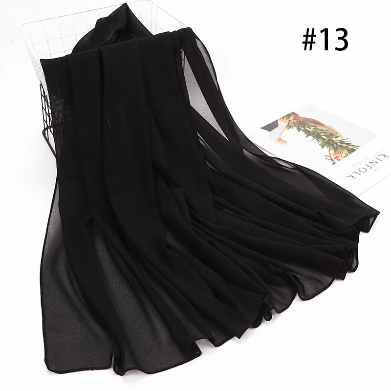 Однотонные длинные шали и накидки из шифона, хиджаб платок шарф, дл...