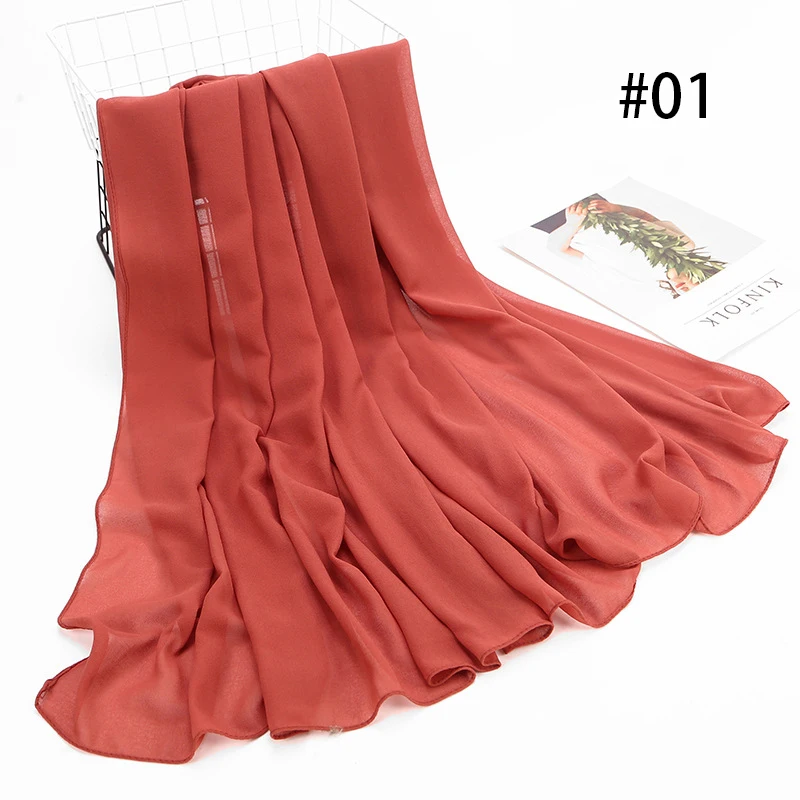 Мусульманский шарф, Женский шифоновый простой хиджаб, шелковые шали...