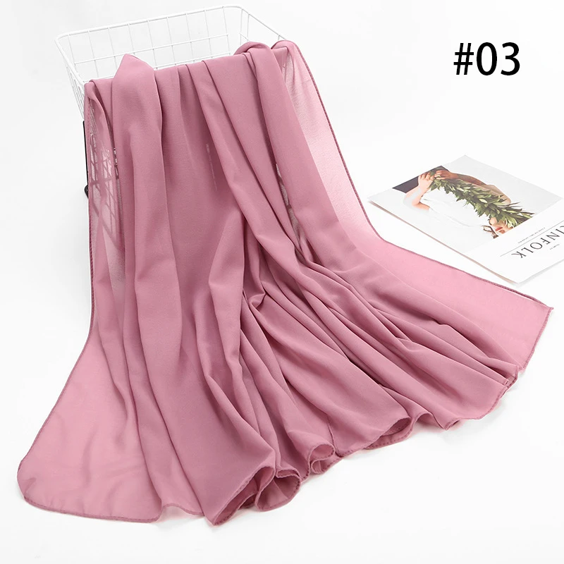 Женский однотонный шифоновый хиджаб, шарф, шарф, мусульманский стил...