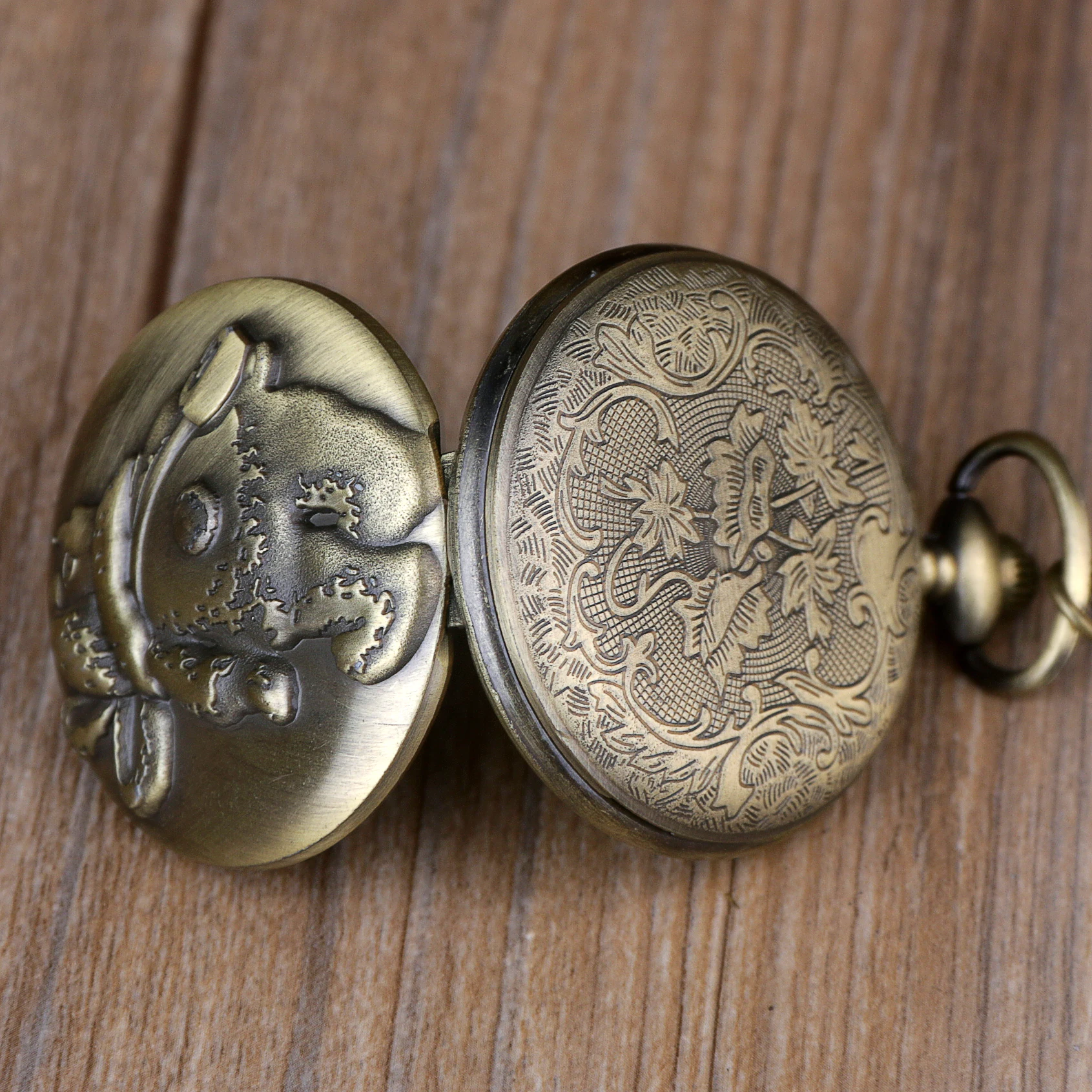 Старинные Бронзовые волк шаблон кварцевые карманные часы ретро Подв...