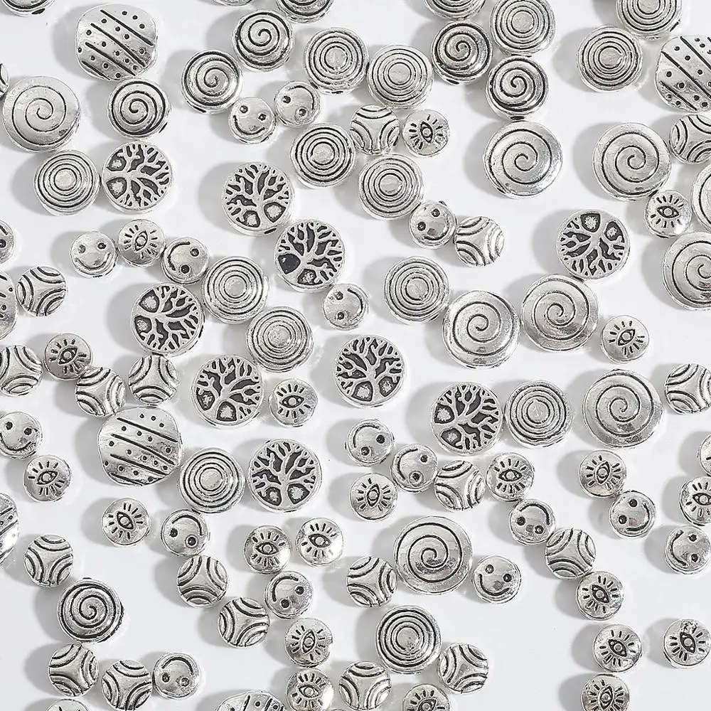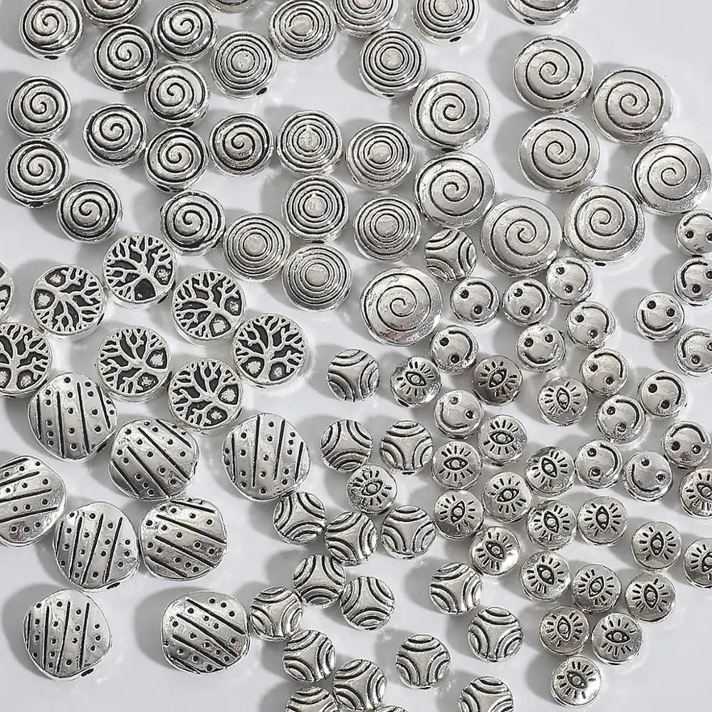 20-50 шт.лот 6-10 мм плоские круглые бусины из сплава, амулеты, античные посеребренные бусины-разделители для самостоятельного изготовления сережек, ожерелий, ювелирных изделий