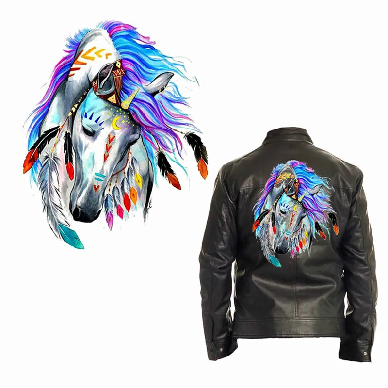 Термоклейкая наклейка с изображением мультяшной лошади, виниловые нашивки, процесс печати на ткани T-N, сделай сам, пирограф яркого цвета