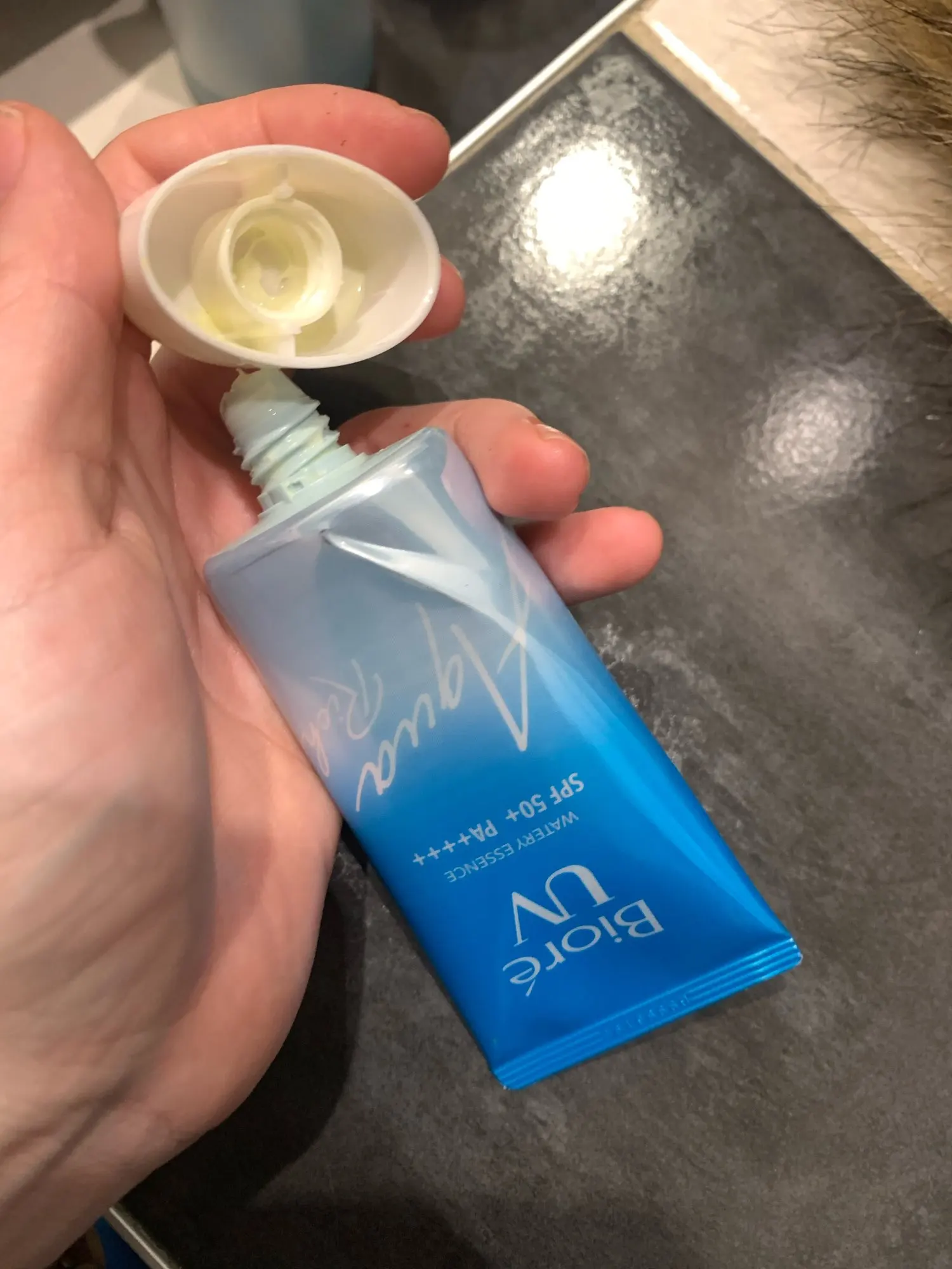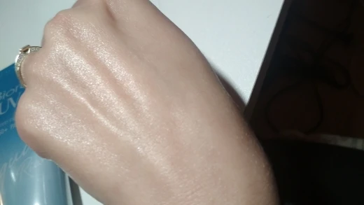 Очень хороший продукт оставляет мне идеальную кожу без блесток и защищает от солнца.