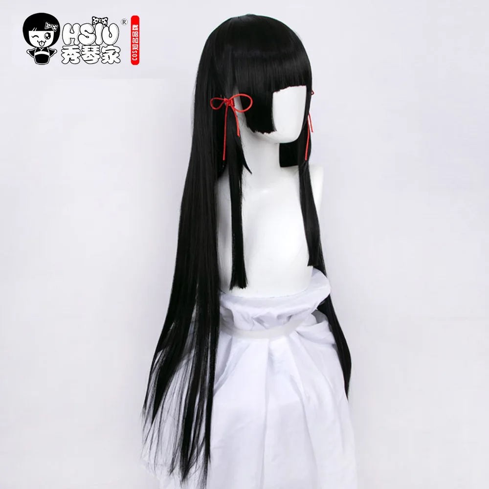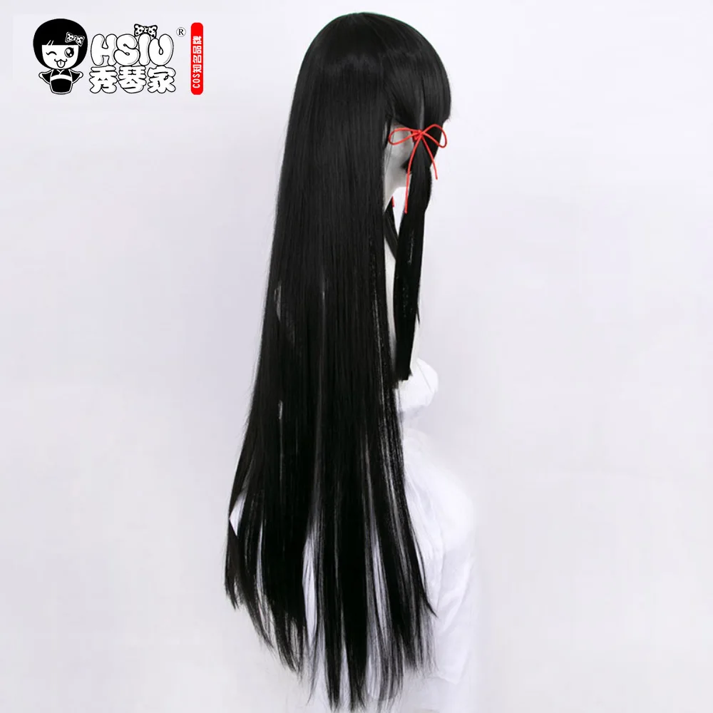 Парик для косплея HSIU Anime Bishoujo Mangekyou Renge, черные длинные прямые волосы с челкой Qi, для косплея на Хэллоуин, брендовый парик с сеткой