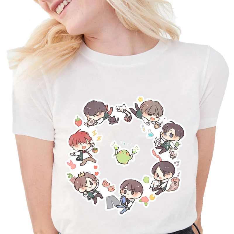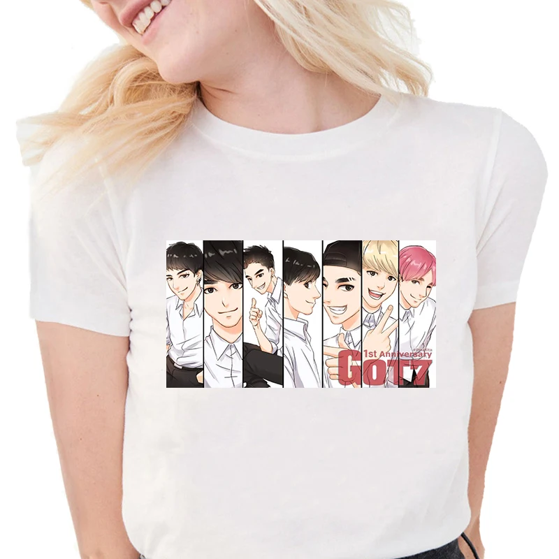 Лидер продаж, футболка GOT7 Kpop JB JR BAMBAM, милая футболка с рисунком, женская одежда, повседневная футболка Harajuku, женские летние футболки с коротким рукавом