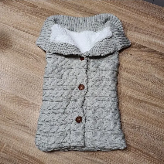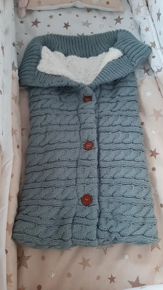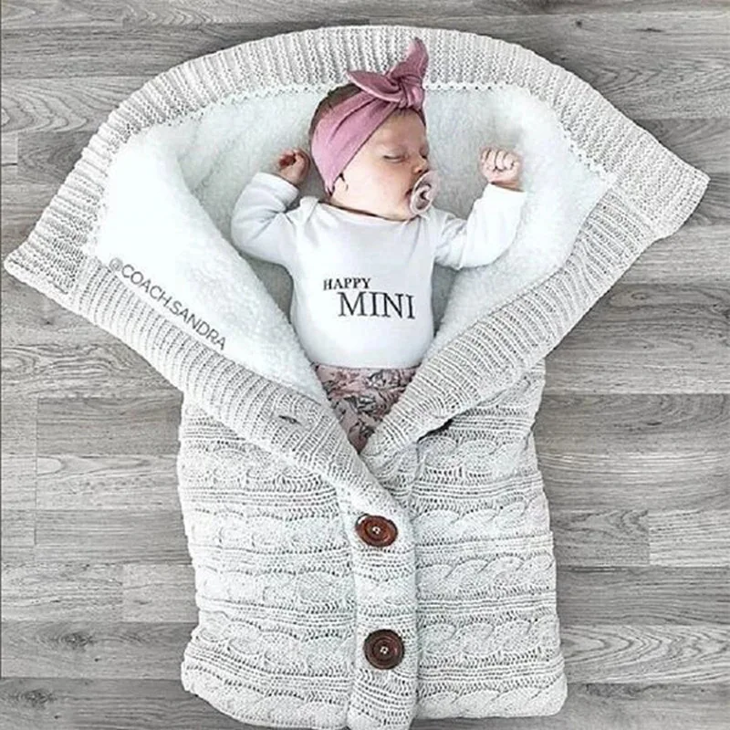 Зимний теплый спальный мешок для новорожденного ребенка, вязаный Пеленальный мешок с пуговицами, пеленальная коляска, детское одеяло, детский спальный мешок