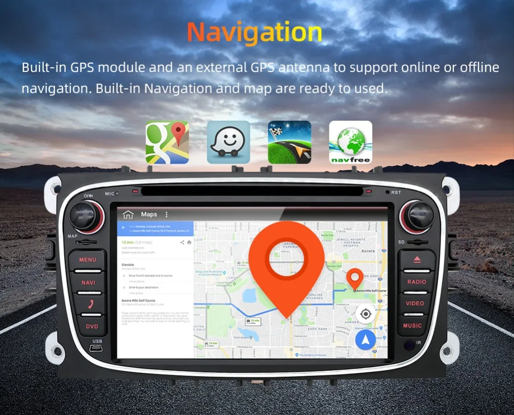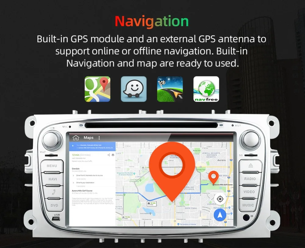 15. Онлайн-навигация: Поддержка gps-навигации, встроенный gps-приемник, Совместимость с Waze / Navfree / Google Map и т. д. драйвер может избежать пробки заранее.