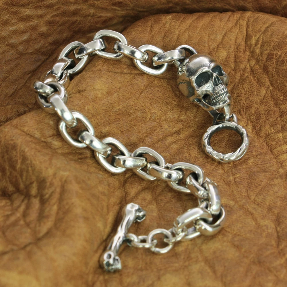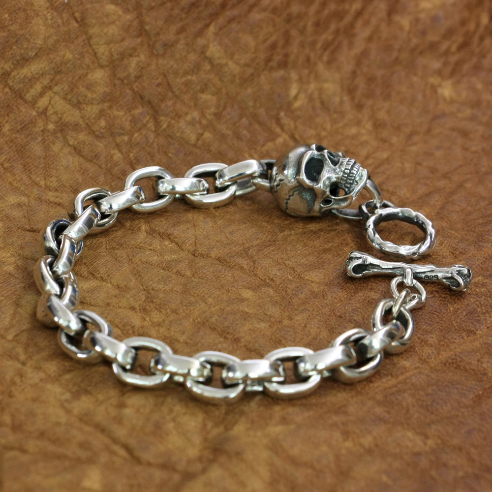 Мужской браслет с черепом, серебряная цепочка с цепочкой в стиле панк-рок, TA193