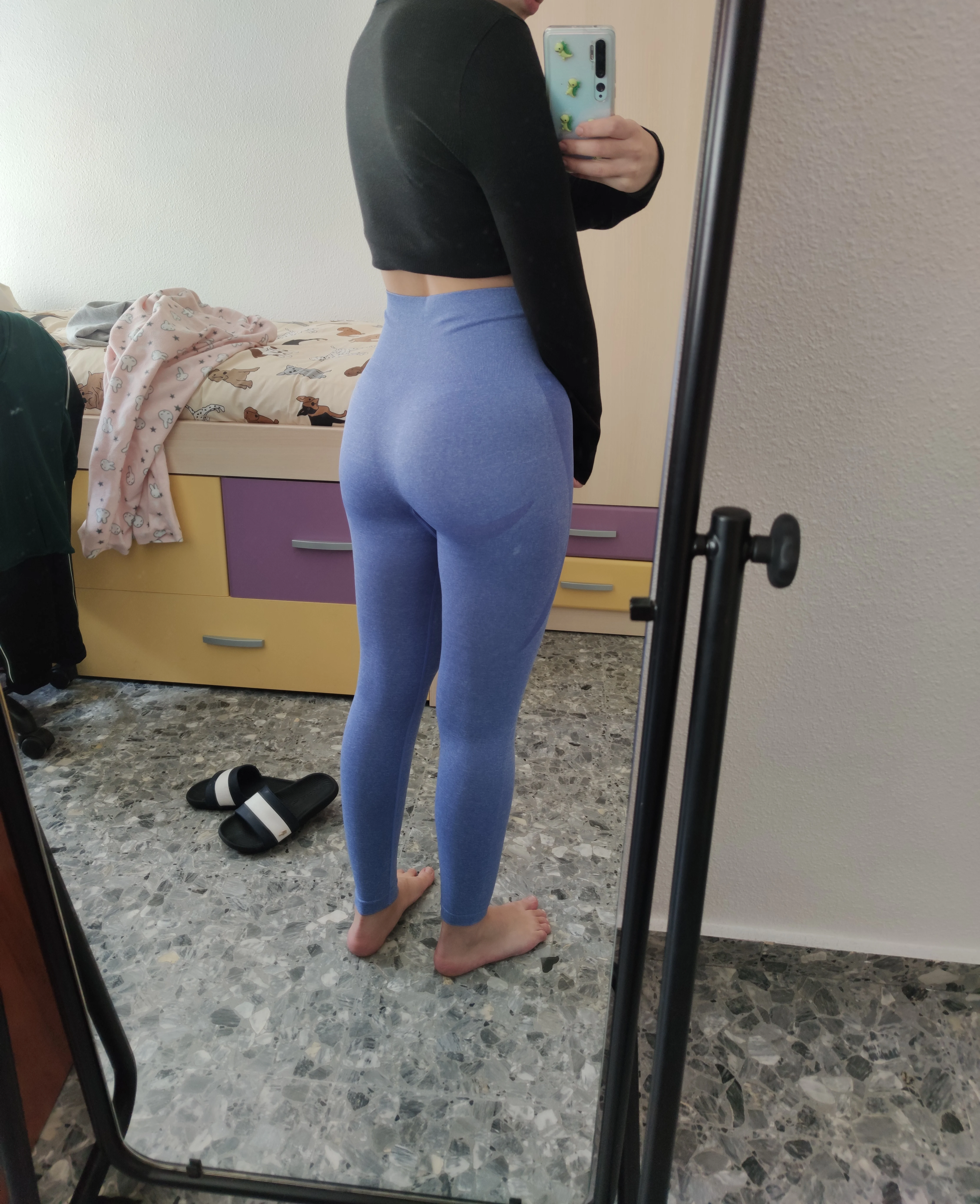 Лосины неплохие, плотные, тепленькие. Но не без минусов: резинка на талии недостаточно плотная даже для меня (68 см), а вот бедра напротив узковаты (93 см). Контрастные вставки перфорированные и просвечивают, а на попе вообще как-то странно расположены и всё время стремятся куда-то убежать. Также они коротковаты, а рост у меня гномий 156 см., но мне это не принципиально. Доставка супермегабыстрая, меньше 2х недель