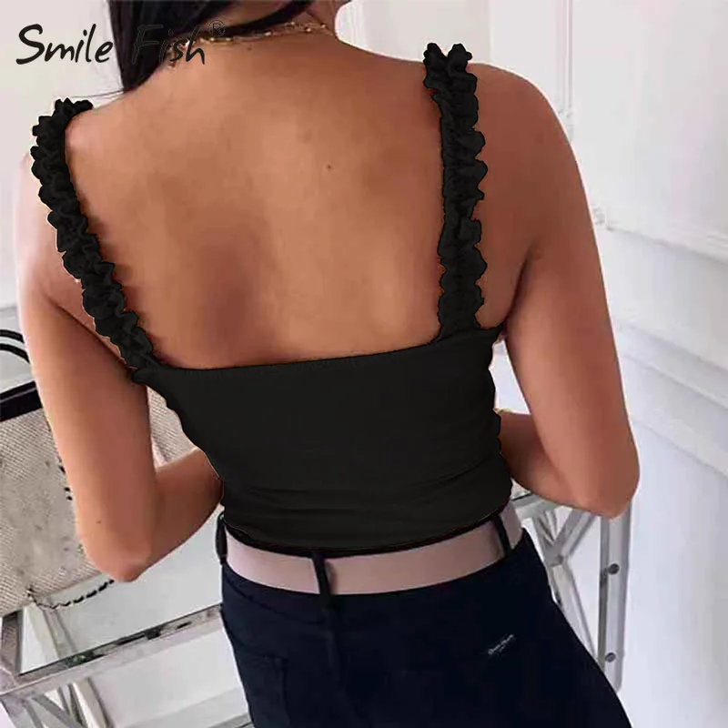Модные женские боди без рукавов с открытой спиной топы трикотажные женские облегающие комбинезоны милые сексуальные оборки, бретели, Клубная одежда M0711