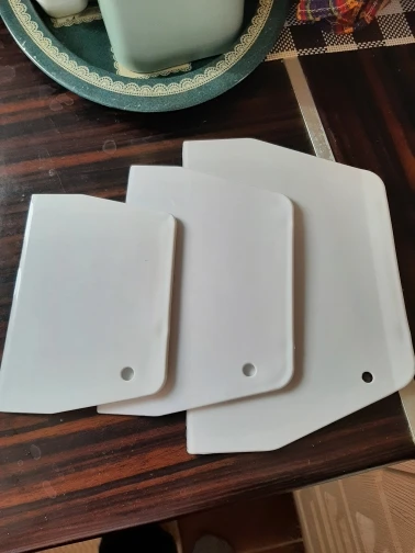 Заказ был отправлен быстро, спасибо продавцу. Шпатели гладкие, без шероховатостей, удобно пользоваться при разделке теста, можно бы конечно и чуть потолще, а то боишься,что сломается при сильном надавливании, но когда приноровишься, то нормально.