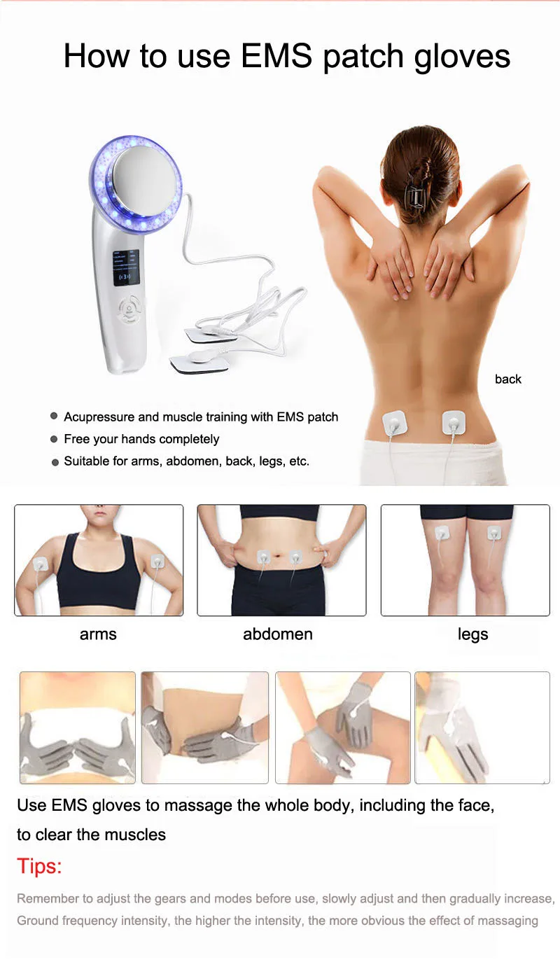 6 в 1 EMS тела, массажер для похудения RF ультразвуковая кавитация целлюлита массаж сжигатель жира Вес потери по уходу за кожей лица