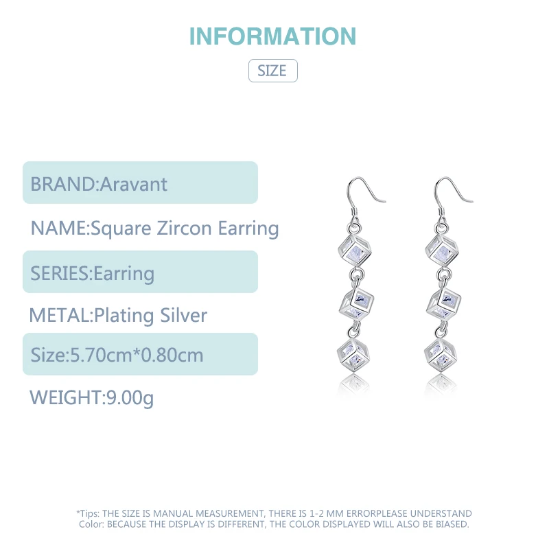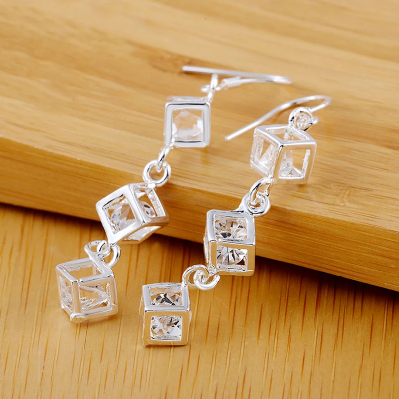 925 серебряные квадратные серьги для женщин, кубический цирконий, длинная серьга, женские серьги, модные ювелирные аксессуары, бижутерия