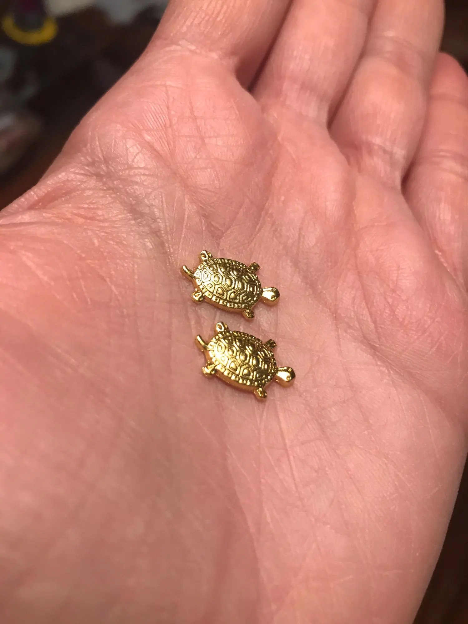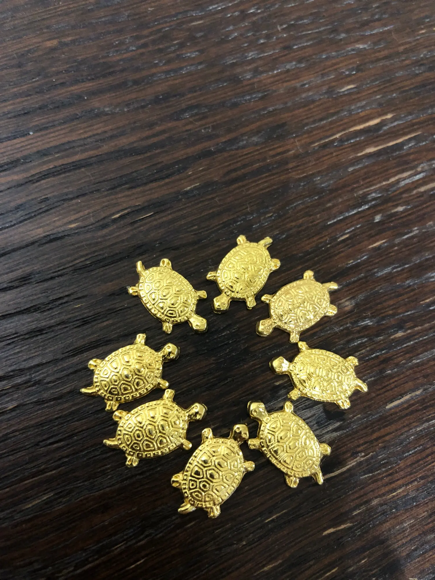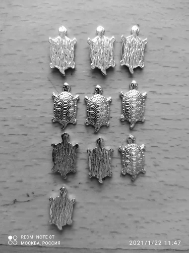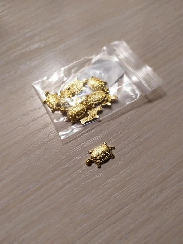 Заказал 08-01-2021, получил 21-01-2021, в Москве, получил в отделении почты. Трек посылки хорошо отслеживался. С продавцом не общался. Товар соответствует описанию продавца. Черепашки маленькие жёлтого цвета, с обратной стороны плоские, толщиной около двух миллиметров. Покупкой доволен. Товар и продавца рекомендую.