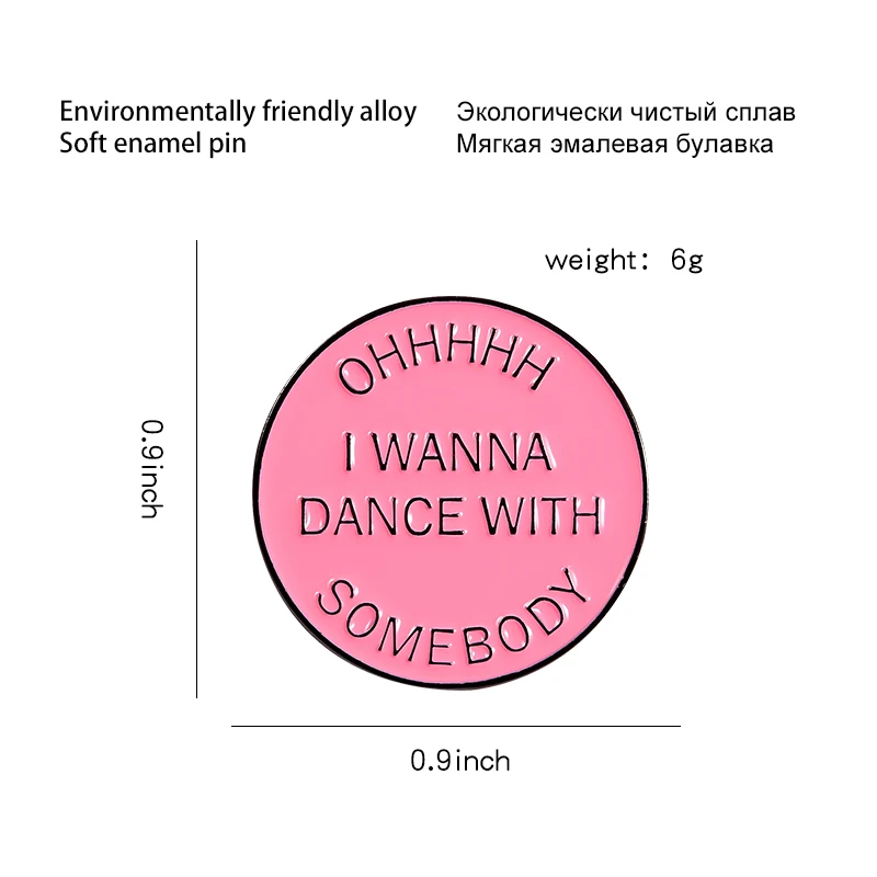 О! Хочу танцевать с кем-то эмаль значок розовый круглые лирика поп-...