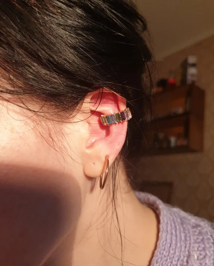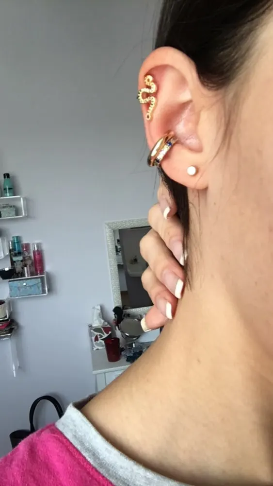 Я рад, что купил только один, и он был недорогой, потому что он очень большой и неуклюжий, чтобы носить в качестве манжеты для уха. Я никогда не буду носить это.
