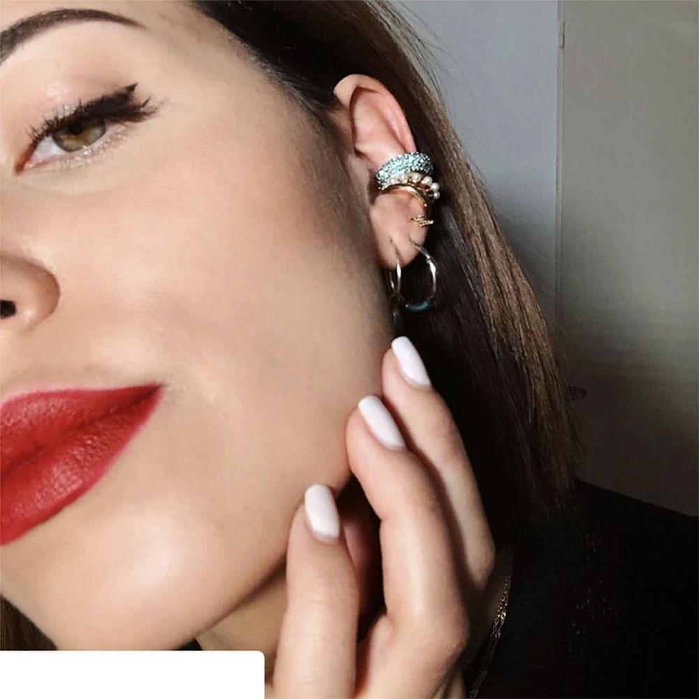 Серьги-каффы женские, с жемчугом циркониевый зажим, без пирсинга, серьги, Надеваемые На ушной хрящ