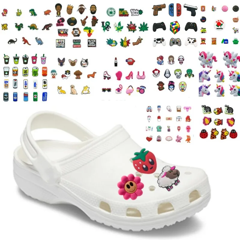 50 шт. Симпатичные животные цветы ПВХ талисманы для обуви собака Единорог пряжки для обуви радужные аксессуары кофейный пистолет украшения подходит для обуви детский подарок