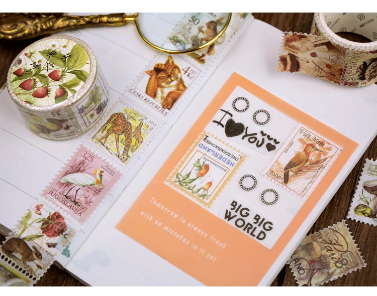 Коллекционная серия ретро-штампов junkжурнал васи лента животные грибы декоративная клейкая лента DIY Скрапбукинг наклейка этикетка