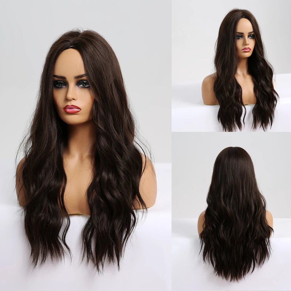 Длинные пушистые темно-коричневые волнистые термостойкие парики LOU...