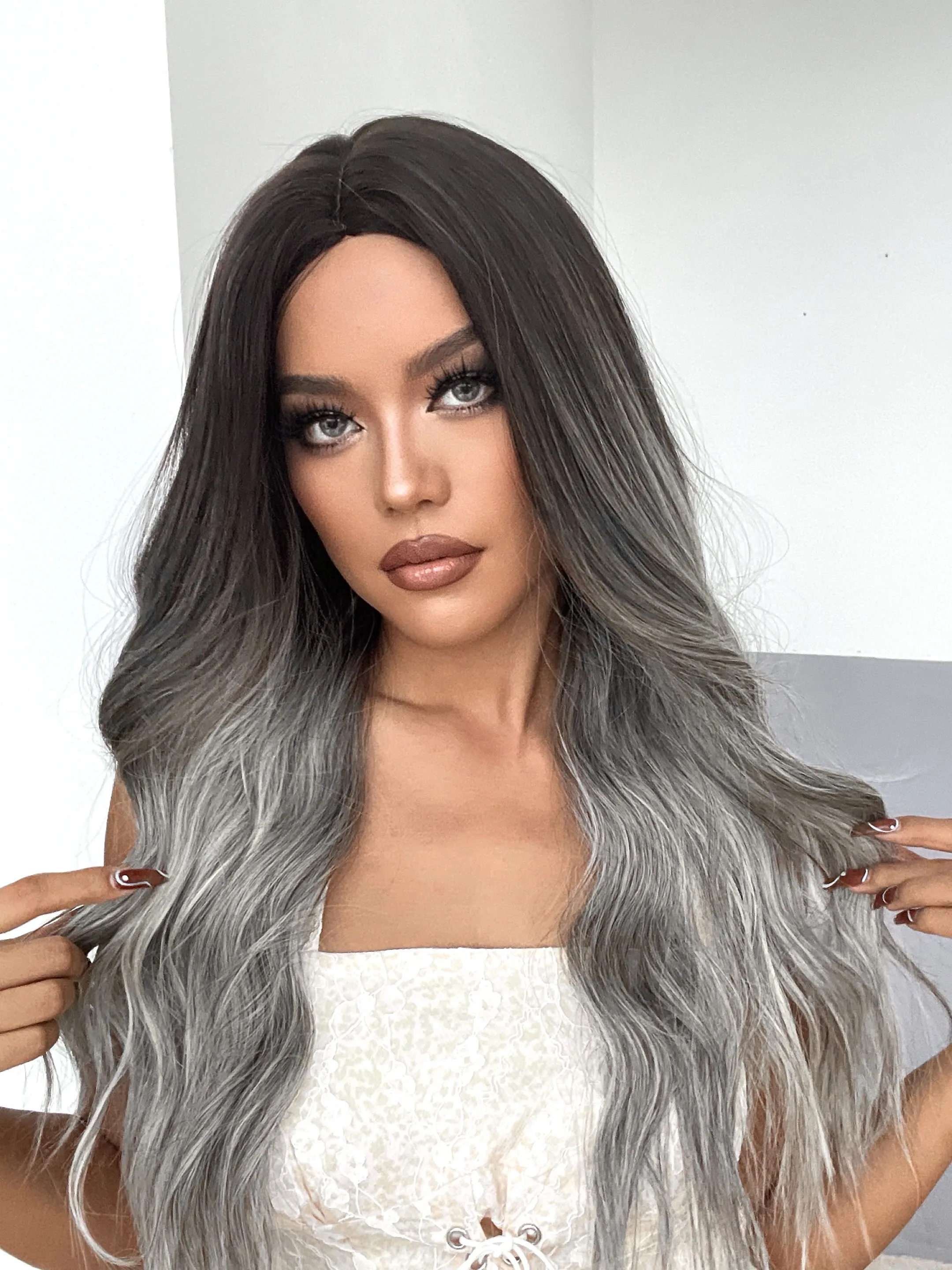 Длинный волнистый синтетический парик GEMMA с эффектом омбре, черны...