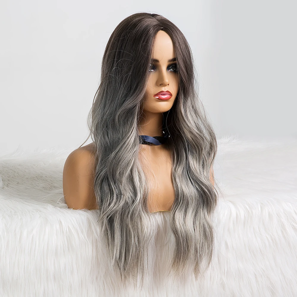 Длинные волнистые парики Луи Ферре, черные, коричневые, серые парики, средняя часть, косплей, синтетические парики для женщин, повседневные, вечерние, термостойкие накладные волосы