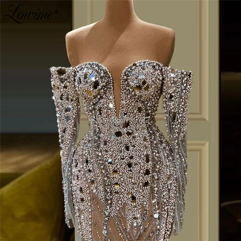 Женское вечернее платье ручной работы, Прозрачное платье с жемчужными кристаллами и бисером, Саудовская Аравия