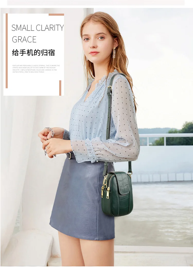Сумка кросс-боди женская из натуральной кожи, маленький кошелек для телефона, Сумочка на плечо с узором под крокодиловую кожу