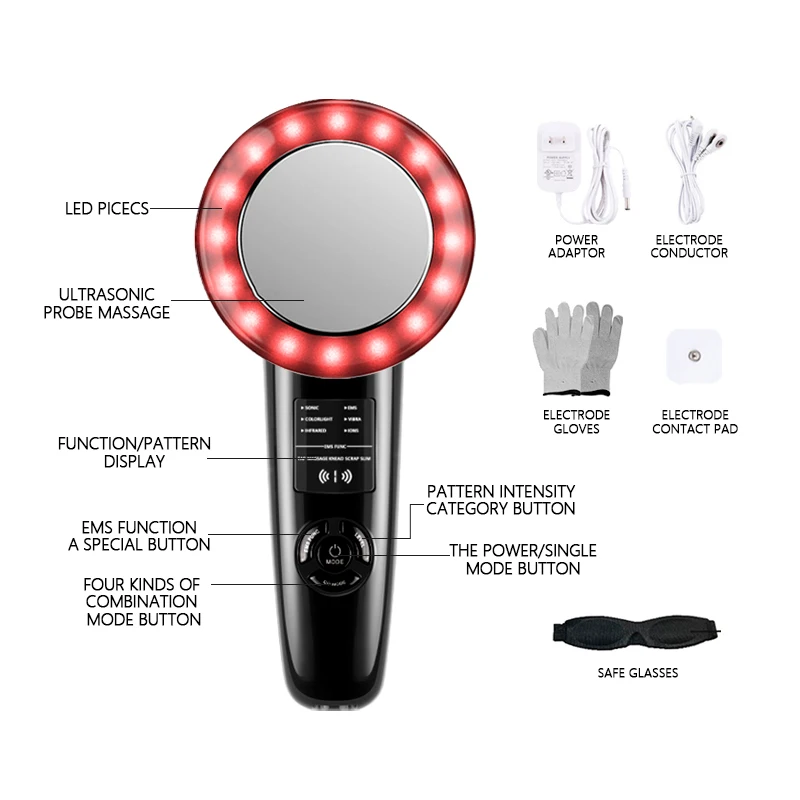 6 In1 EMS ультразвуковая кавитация Гальваническая ультразвуковой массажер для тела лифтинг лица машина инфракрасная терапия по уходу за кожей лица Инструменты