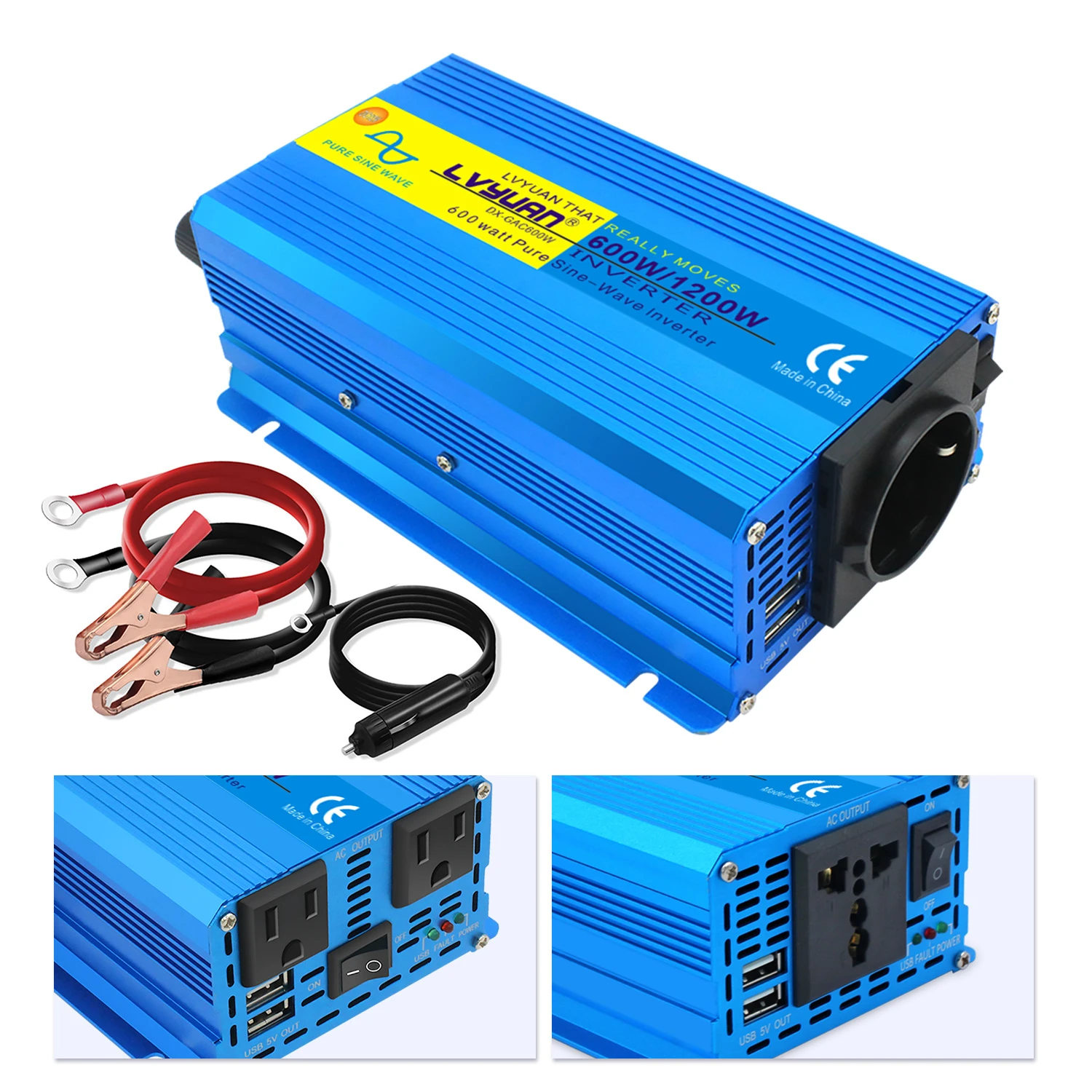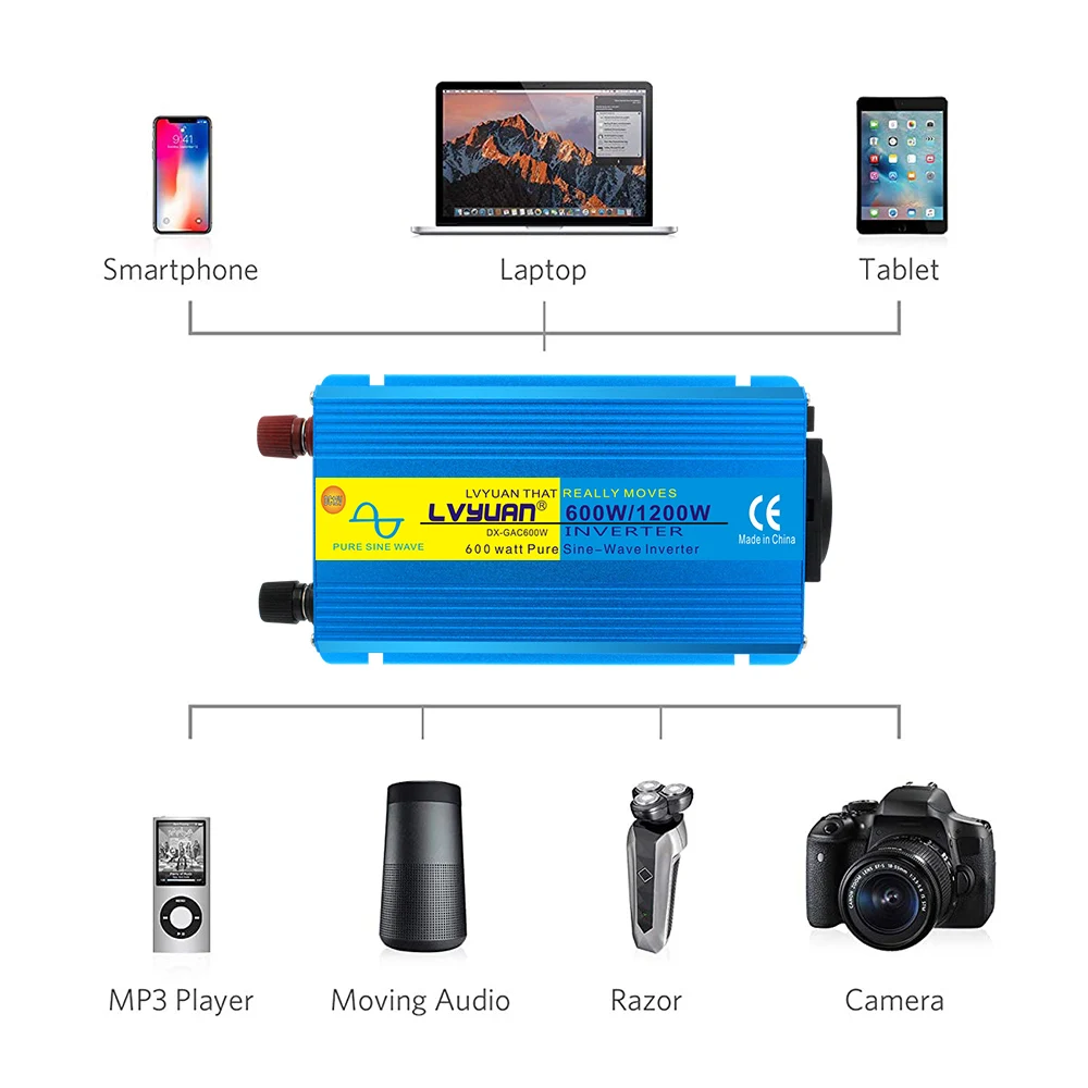 600 Вт1200 Вт Инвертор немодулированного синусоидального сигнала 12 В постоянного тока в переменный ток 220 в 230 В преобразователь напряжения адаптер ЕС универсальная розетка автомобильные аксессуары