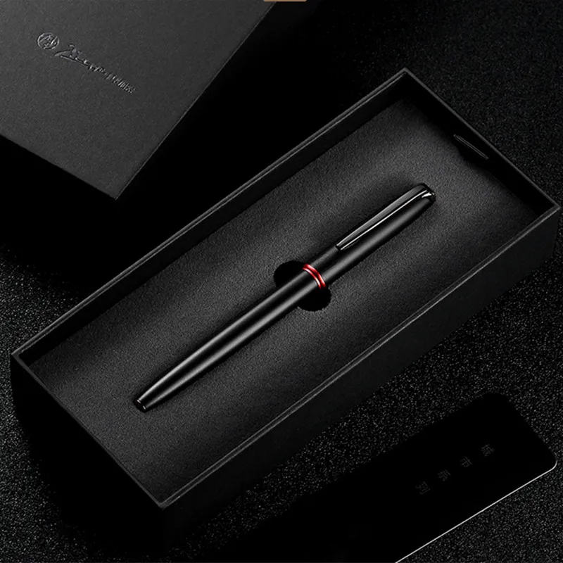 Чернильная ручка Picasso Pimio, черная металлическая перьевая ручка EFMизогнутое перо 0,380,61,0 мм с красным кольцом и матовым корпусом, чернильная ручка для офиса, делового подарка