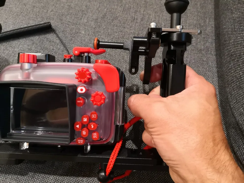 Обновленная версия (черный и красный 2 цвета): Материал: Алюминий из алюминиевого сплава Цвет: черный/красный Технология обработки: обработка ЧПУ/ЧПУ Обработка поверхности из алюминиевого сплава: анодная обработка окисления Размер изделия: 60*70*75 мм Вес брутто продукта: 100 г Подходит для дайвинга с двумя ручками/подходит для всех серий GOPRO/SJcam / Xiaoyi и других спортивных камер, для Nikon для Canon Micro SLR и других водонепроницаемых чехлов.