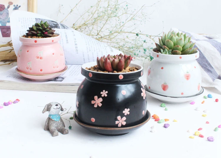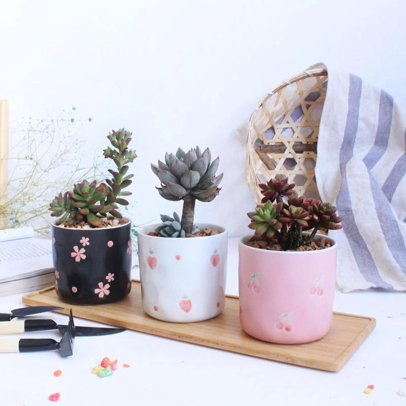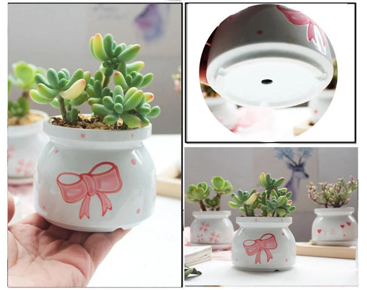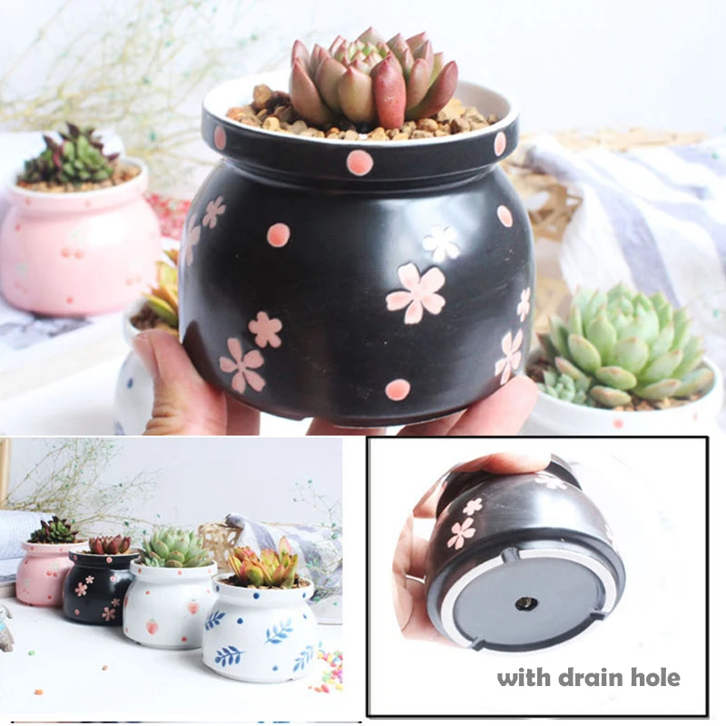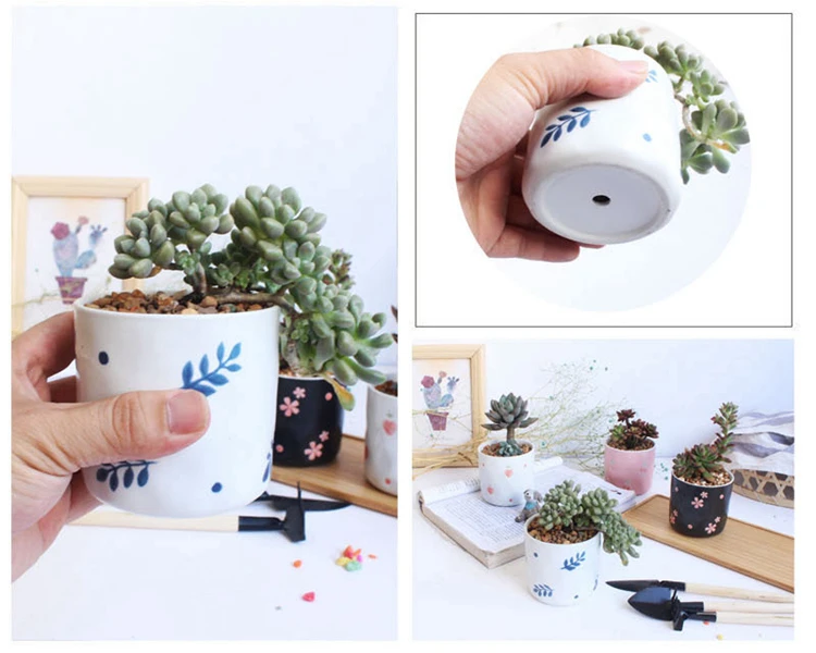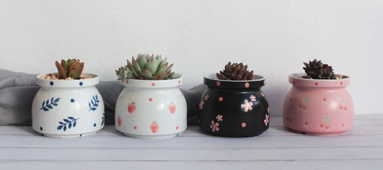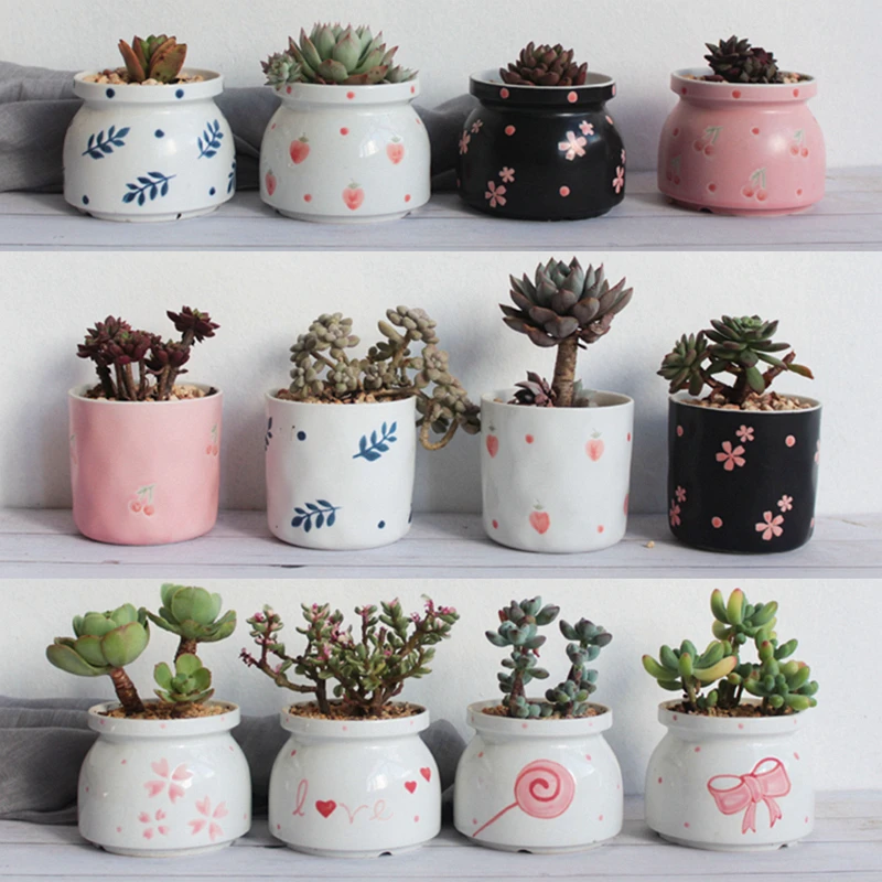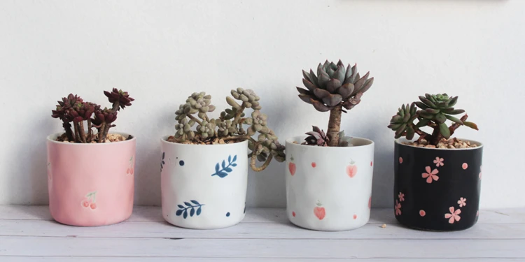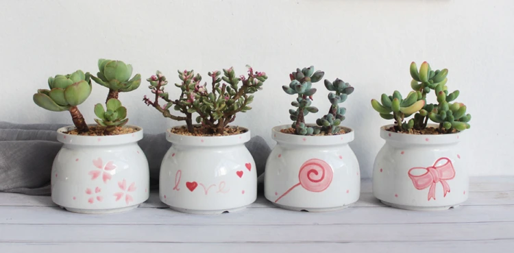 Набор из 4 цветочных горшков ручной росписи, цветочный дизайн