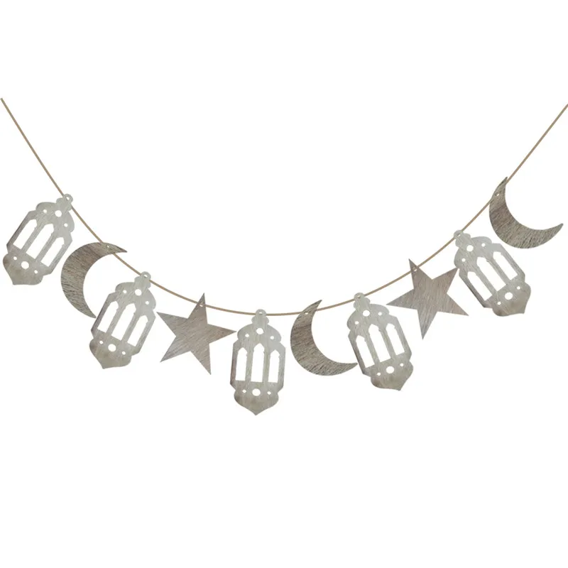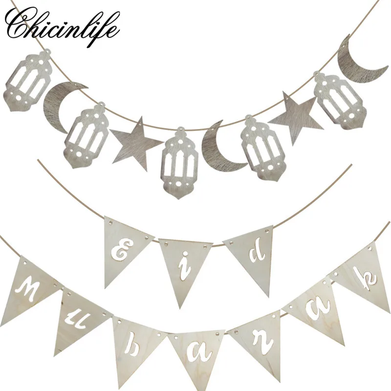 1 Набор деревянных баннеров Eid Mubarak, веселая мусульманская гирлянда из мусульманской бумаги, вечерние украшения на Рамадан