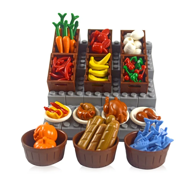 Строительные блоки сделай сам, еда, курица, тыква, рыба, фрукты, яйца, хот-дог, игрушка, детали MOC, городские аксессуары, кирпичи, совместимы со всеми брендами