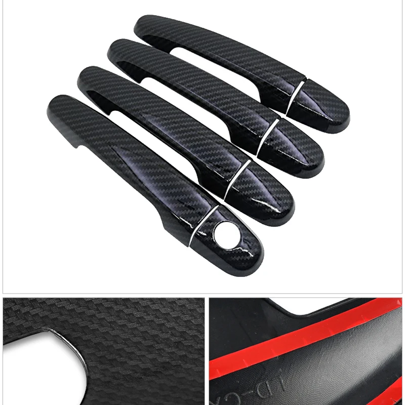 4 шт. глянцевый черный чехол из углеродного волокна для дверных руч...