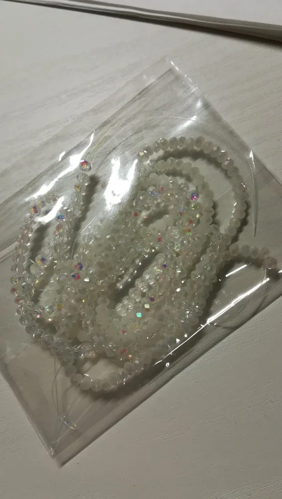 доставка 25 дней до Саратова, размер соответствует, бусины ровные, без брака, цвет АВ красиво переливается, стекло или пластик - не поняла, но грани четкие, ровные. рекомендую товар. и продавец молодец- все положил как заказала