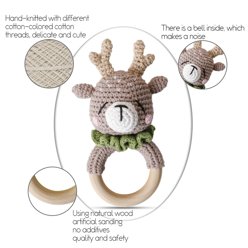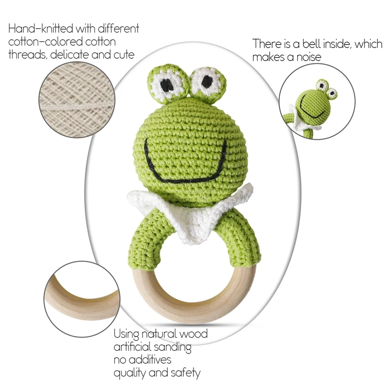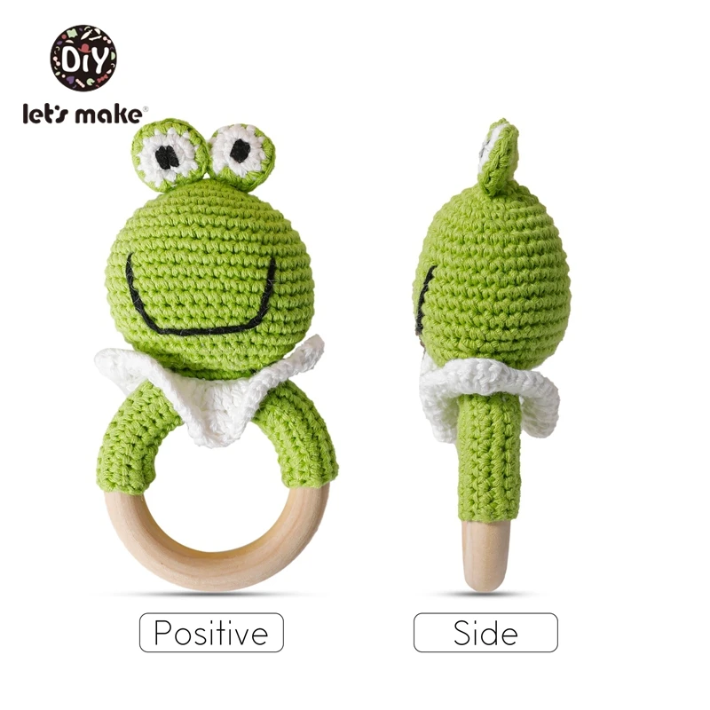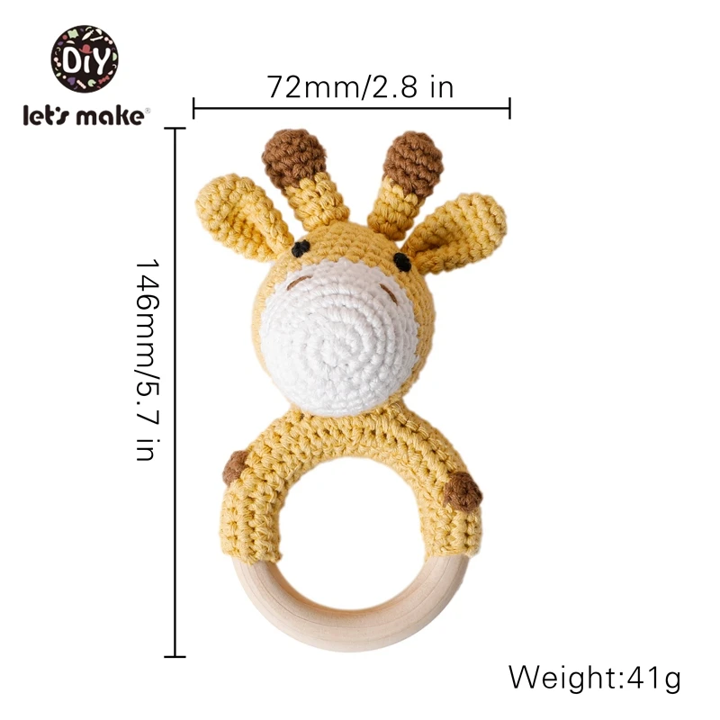 Детские погремушки для новорожденных 1 шт., вязаные крючком игрушки для малышей 0-12 месяцев, Обучающие музыкальные детские мобильные, лось, лягушка, корова, Let's Make