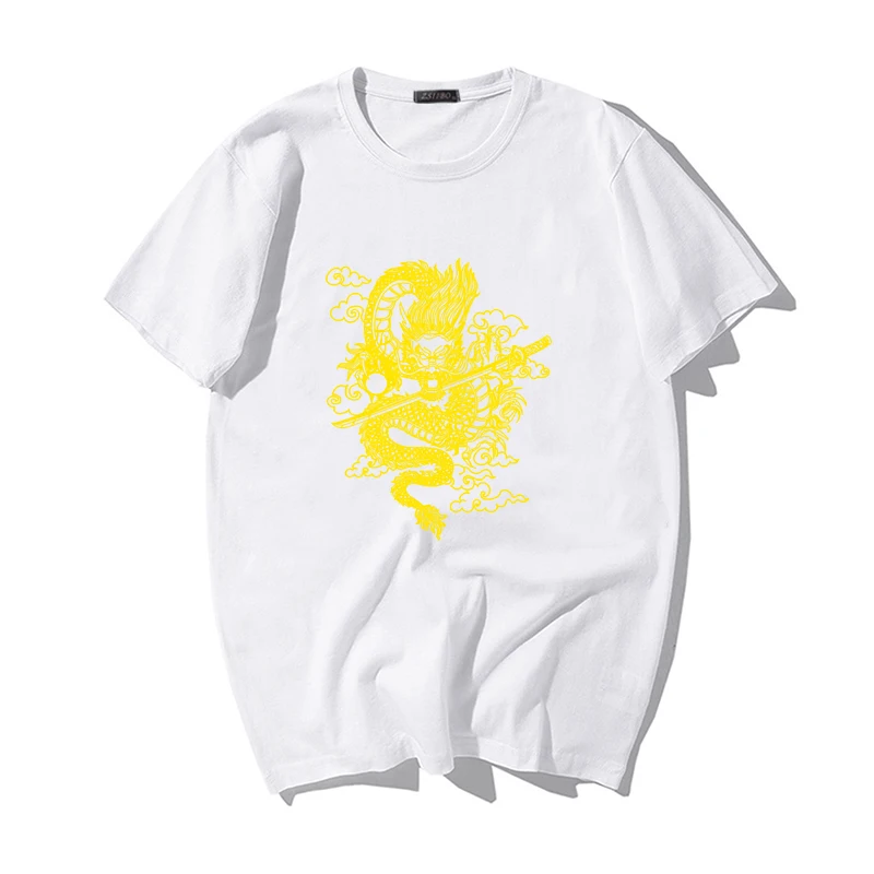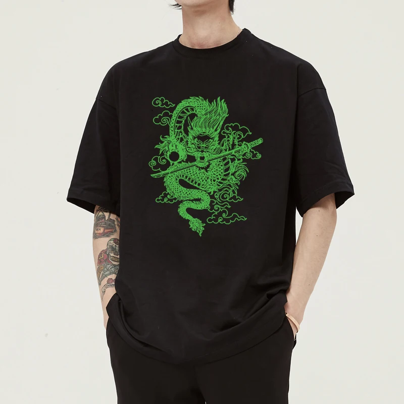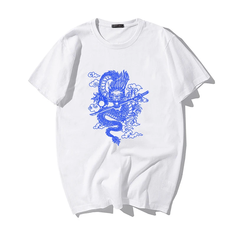 Футболка мужская оверсайз с китайским драконом, винтажная тенниска с коротким рукавом, топ в стиле хип-хоп, уличная одежда в стиле унисекс, лето