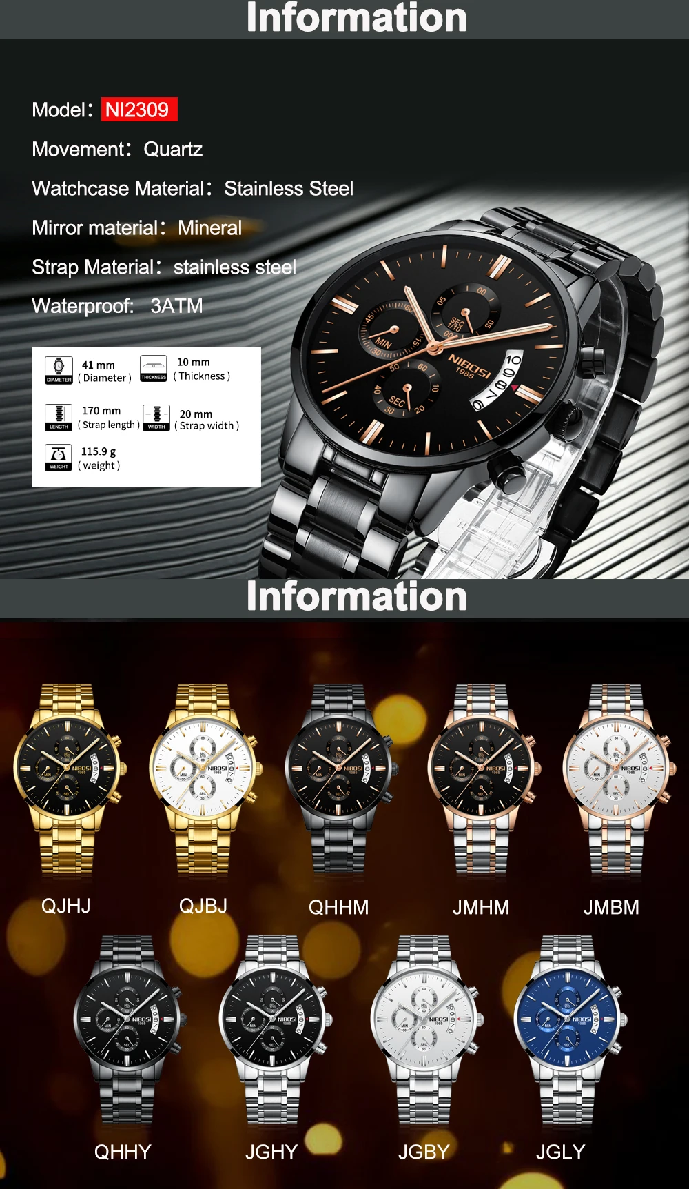 Package Including1 x Nibosi Watch 1 x Elegant Box 1x User Manual