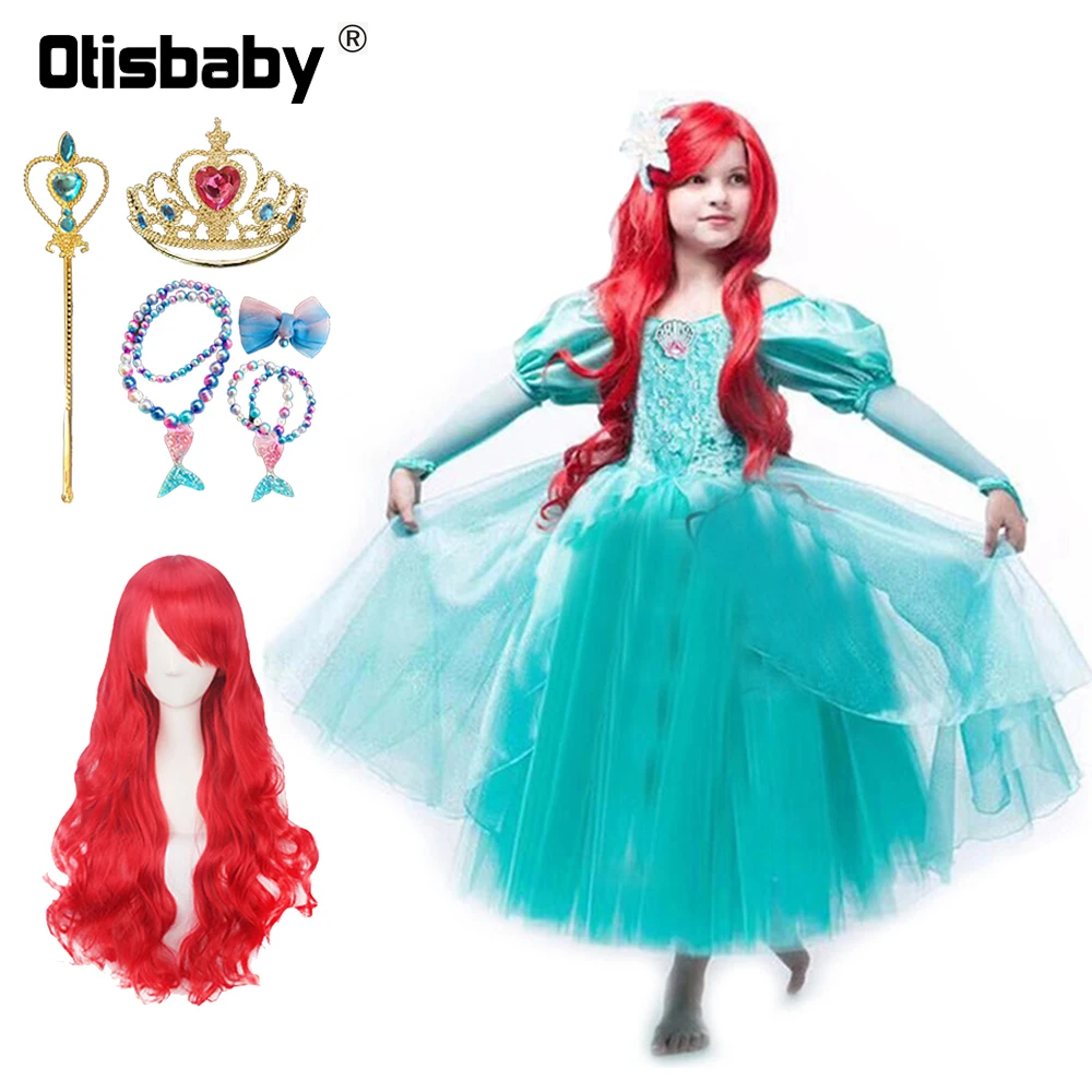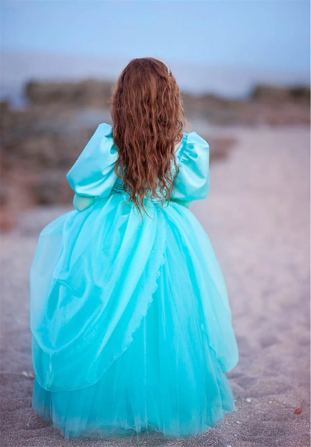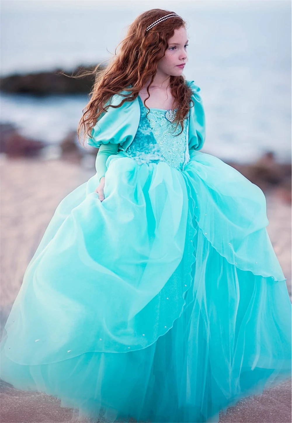 Новогодний костюм Русалочки, детское платье принцессы Ариэль на Хэллоуин, пышное зеленое платье с пышными рукавами для девочек, платье на день рождения для младенцев