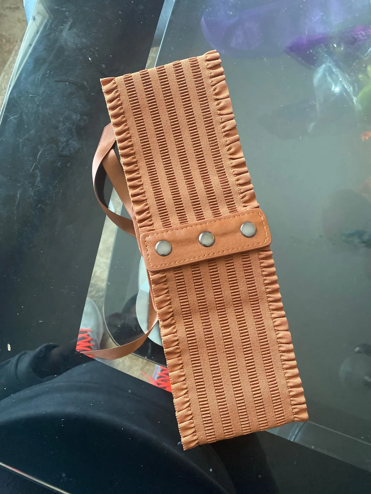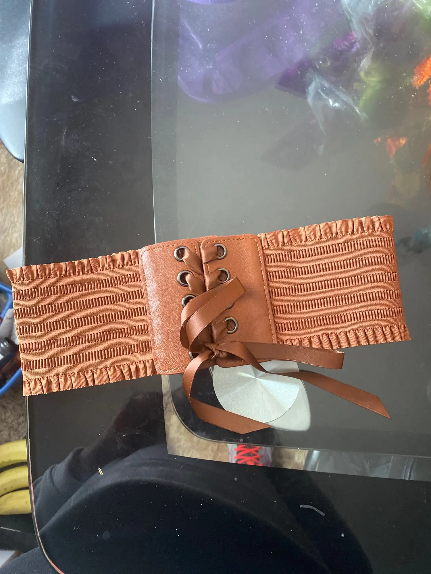 Красивый пояс, цвета молочного шоколада. Резинка тянется от 70 до 90 см+можно ослабить ленточки...