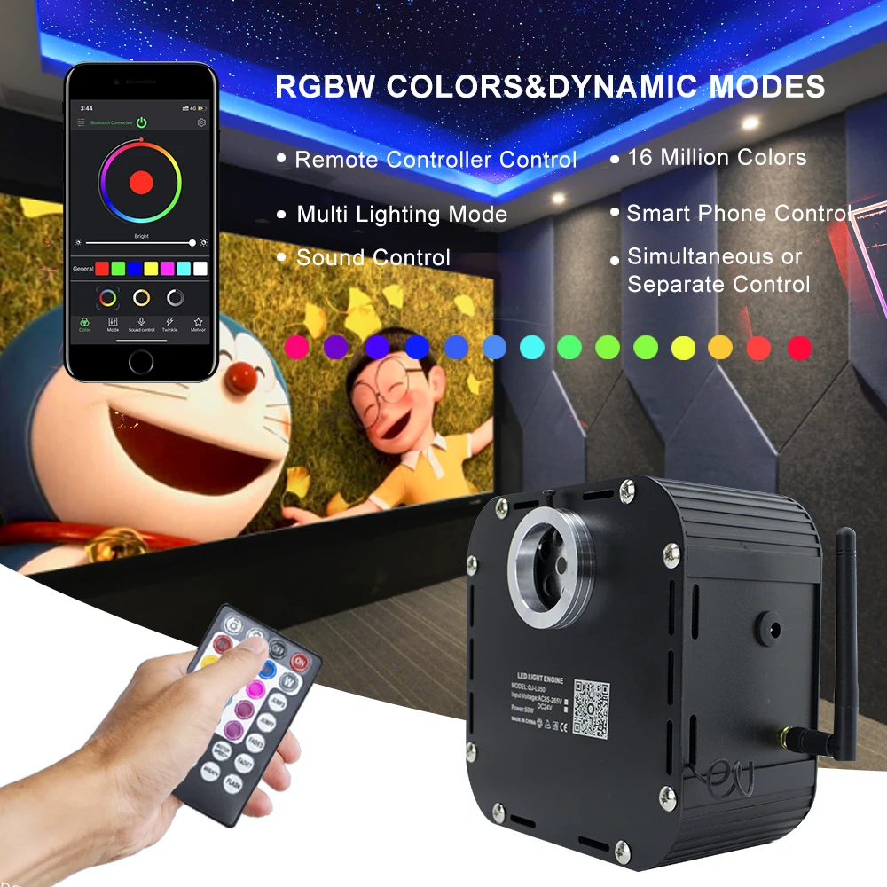 50 Вт RGBW оптический волоконный светильник светодиодный, двигатель, Bluetooth приложение, контроллер звука для оптоволоконного кабеля, Звездный ночной Светильник