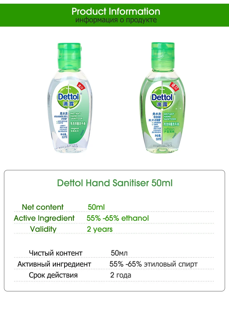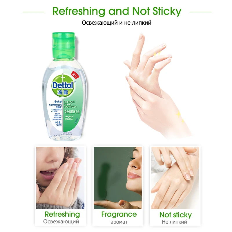 Dettol 50 мл * 2 гель для дезинфекции рук 65% спирт портативное одноразовое безводное Мгновенное мыло для рук для взрослых и детей