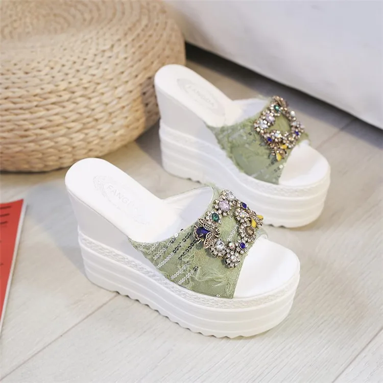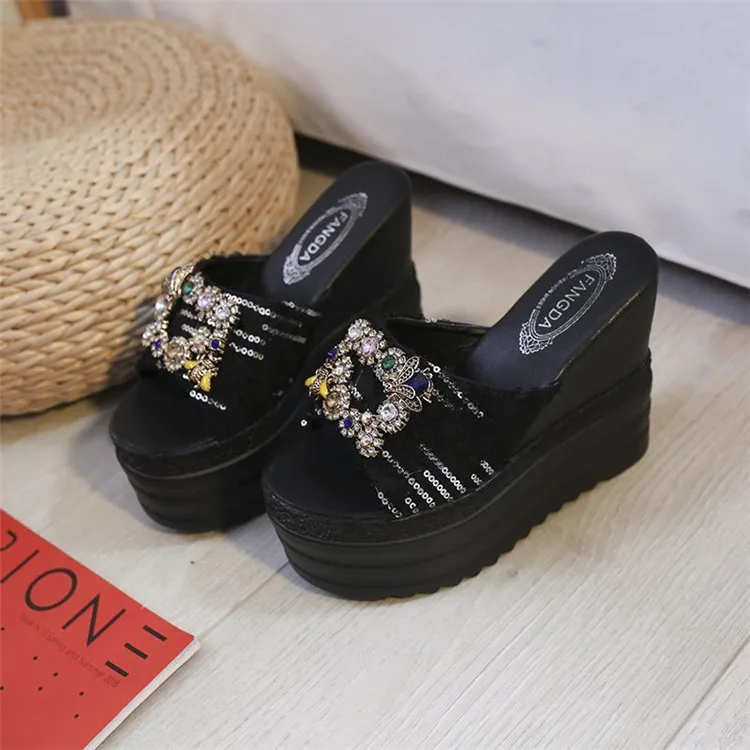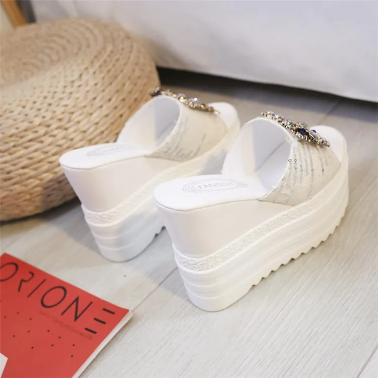 Женские тапочки,шлепанцы женские летние,Шлепанцы на платформе с кристаллами, женские летние шлепанцы на платформе, каблук-танкетка, шлепанцы для пляжа, сланцы, женский дизайн, 11 см