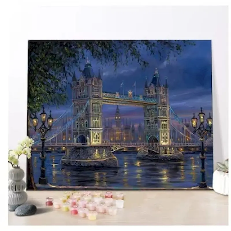 Раскрашивание по номерам городской пейзаж на холсте с рамкой для ри...