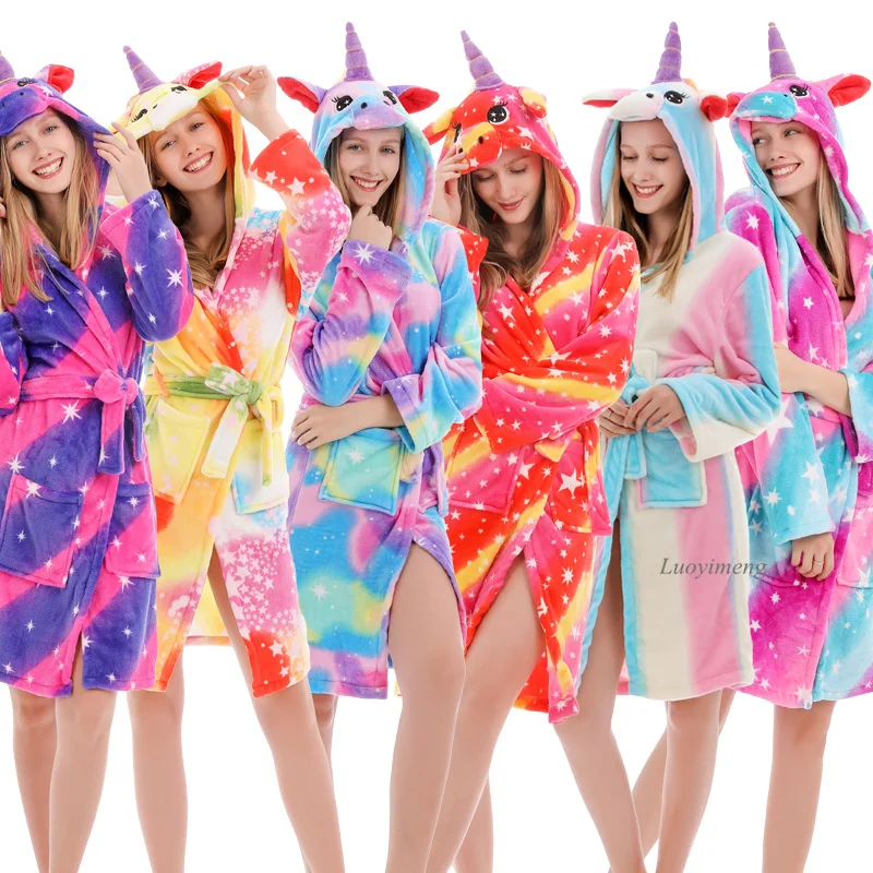 Банный халат с животными для взрослых, одежда для сна, банный халат с единорогом, ночные рубашки, плотный теплый халат, кигуруми, халаты, пижамы, полотенце с капюшоном, купальный костюм